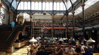Mackie is housed in a 1858 grade 2 listed building that was one a part of Smithfield Market and still maintains many of it's features with a wonderful glass ceiling, wood floors, iron railings and a general air of industrial-sheik. It consists of 9 independently operated vendors that serve everything from pizza to tacos to Thai curries as well as, of course, a good assortment of drinks to wash it all down.