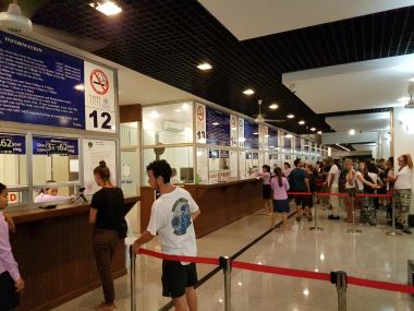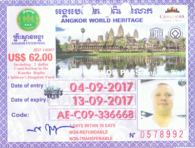 The ticketing complex (it was big) is just south of Angkor Wat on the road out of Siem Reap and was already quite busy when we arrived at about 4:45 with a number of coaches, tuk-tuks, and other vehicles in the car park. Rous showed us to a counter that did not have so many people waiting at where they took our picture for the tickets then suggested we might want to find something to eat though the queue for the only stall selling food was way too long so we wandered around sleepily for a few minutes before returning to the coach. We were given a lanyard with our three-day tickets to hang around our neck.