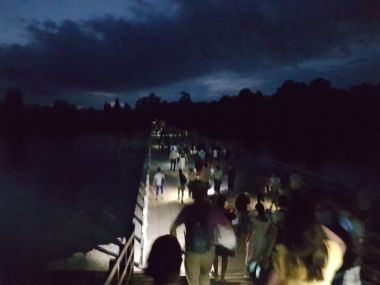 The main stone causeway leading into the temple across the moat is being restored so we had to walk across a temporary “pontoon” bridge which was quite exciting as it wiggled under the feet of the great hordes of tourists that seemed to have the same idea of seeing the ruins at sunrise. The torches (flashlights) we were told to bring certainly came in handy.