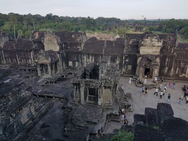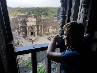 The original steps are far steeper than the ones they have now for visitors but it was still quite a climb. Most definitely worth the climb though with fantastic views of the complex and the jungle surrounding us. It is sort of a miniature version of the ground floor but with much more elaborate carvings. We followed the narrow and somewhat awkward corridor around the outside stopping at every opportunity to have a look out of the windows at the amazing view.