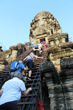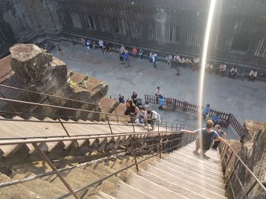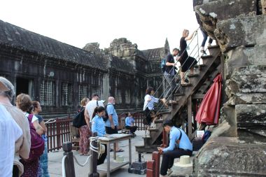 Rous wanted to get us into a queue to visit the highest section of the temple where she explained would be very busy as the day went on. As it is, we waited 15 minutes sitting in the heat that was already climbing. The third level, the “Bakan”, is the highest section of the temple accessed by some very steep steps where only gods and the king were allowed to visit. There are only a certain number of visitors allowed up at any one time so we waited for our turn. We were given a numbered ticket to hang about our neck for our visit as we climbed the steps upwards.
