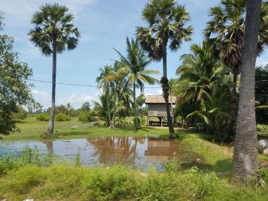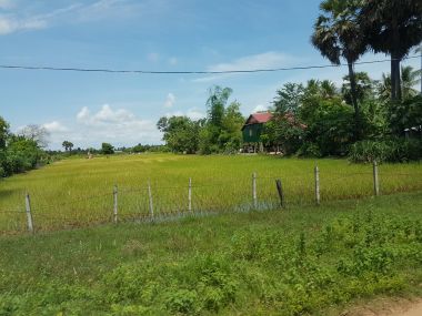 At 10:00 we met in front of the hotel to continue our tour. We very quickly left the busy streets of the city behind as we headed to the north. Paddy fields, the occasional house and village were really all there was to see. Very lush looking with lots of trees and green fields, you can tell it is the rainy season. It must be so much browner other times of the year. The houses are pretty much all up on stilts and well built. Very few people out and about that we could see though there were a number of stalls selling fresh fruit and souvenirs.