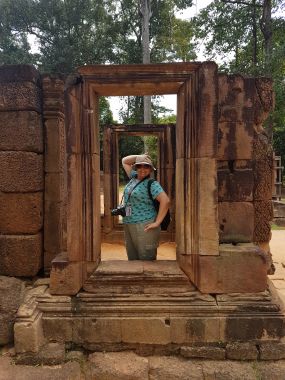 Beside the road we could see ruins here there and everywhere. Loretta and I had the driver stop to take some pictures of the tiny Chau Say Tevoda Temple and Thommanon temples located on opposite sides of the road from one another. Just stop beside the road and you can see 11th and 12th century (respectively) Hindu temples…They just look like film sets.