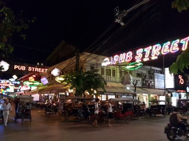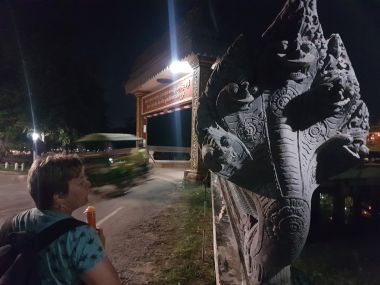 One of the attractions in Siem Reap for tourists is “Pub Street” (easy to spot with a large neon sign over the road) which is, as you might expect, crammed with cheap drinking establishments with many offering $0.50 draft beer. We saw Sally and Tony who we stopped briefly to chat with before continuing our wandering. Lots of women (and men looking like ladies, of course) hanging around in places looking for company for the evening (if you get my drift). There were the typical tourist stalls on the road selling their fried scorpions and spiders just adding to the picture. At times the experience was a bit scary and unsettling. To Mel and myself it is all not really that appealing as we do not drink nor are interested in the entertainment on offer.