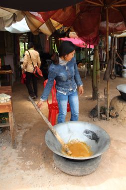 We stopped beside the road for a few minutes to have a look at some local people making cane sugar in large aluminum containers. Rous got us some samples to try. It is quite a brown coloured mixture it is quite tasty and I ended up buying a small container of it to take home ($1).