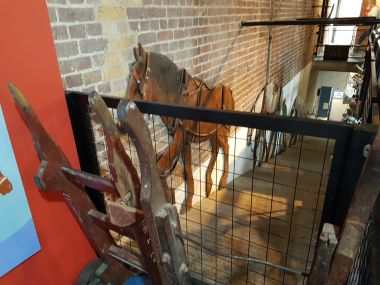 The first floor houses a number of interesting items including a complete map of all of the canals in the city as well as a video presentation showing films from the hey-day of the canals in London (very worth your time to sit and watch). The far side of the floor has a recreation of a stable where the horses used by both the canalboats/barges as well as delivery vehicles for the ice warehouse were stabled, walking up a long, steep, ramp from the ground floor (now where you can secure your bike, if you visit using it).